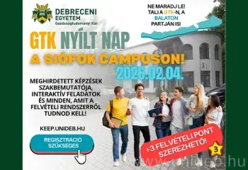 Siófokon is nyílt napra várja a felvételi előtt álló fiatalokat a Debreceni Egyetem Gazdaságtudományi Kara. Február 4-én, szerdán interaktív programok és izgalmas előadások révén első kézből kaphatnak a leendő hallgatók átfogó képet az egyetem által nyújtott lehetőségekről, a kar Balaton-parti kurzusairól.