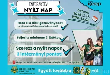 Idén is interaktív programokkal és izgalmas előadásokkal várja a pályaválasztás előtt álló középiskolásokat a Debreceni Egyetem Gazdaságtudományi Kara. A december 17-i, szerdai nyílt napon a résztvevők nemcsak átfogó képet kaphatnak a kar debreceni, valamint szolnoki kurzusairól is, de értékes ajándékokkal és plusz felvételi pontokkal is gazdagodhatnak.